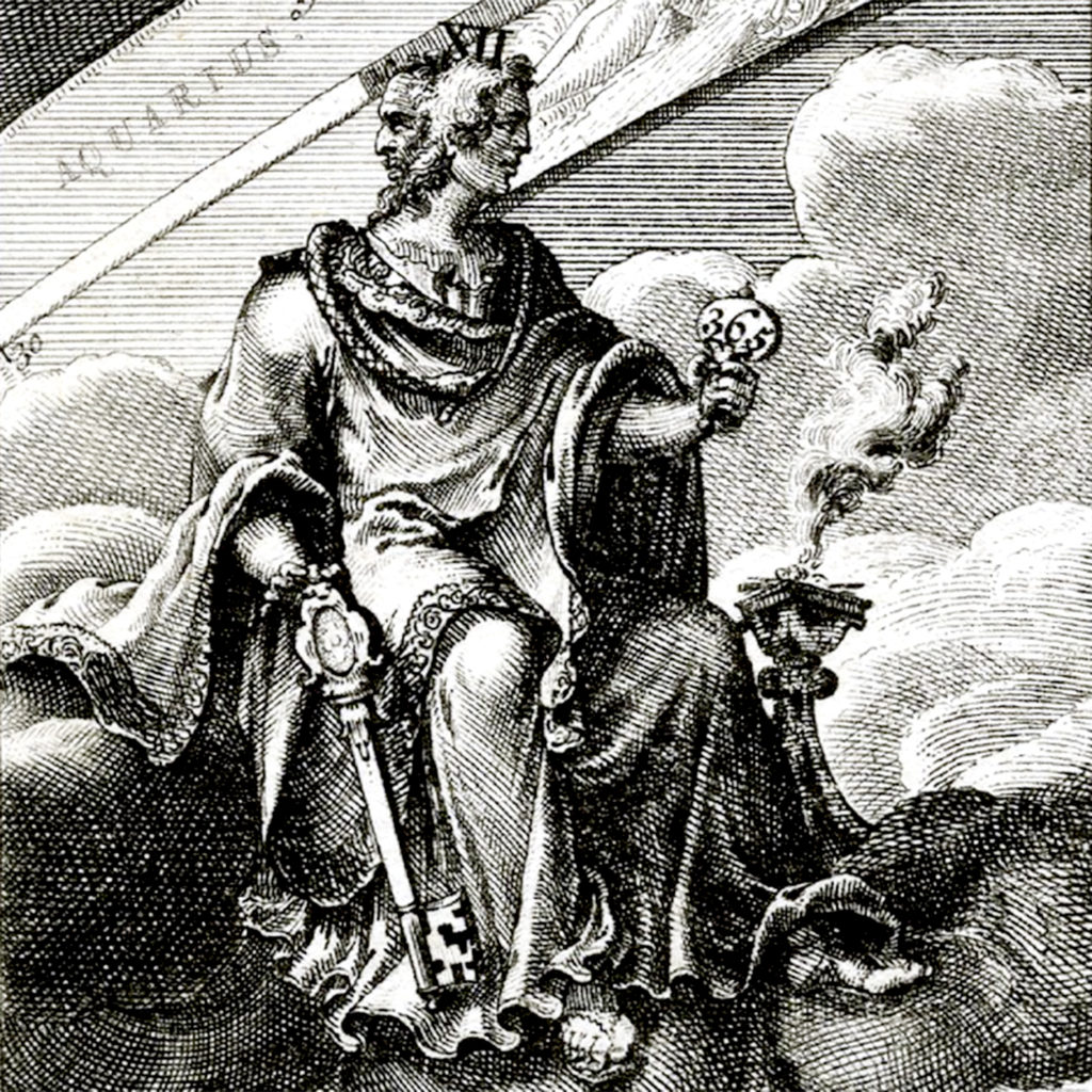 Avec Janus, Dieu des commencements et des fins, des choix, des passages et des portes. Emprunté à Jacobus Harrewijn, 1698